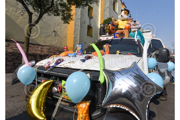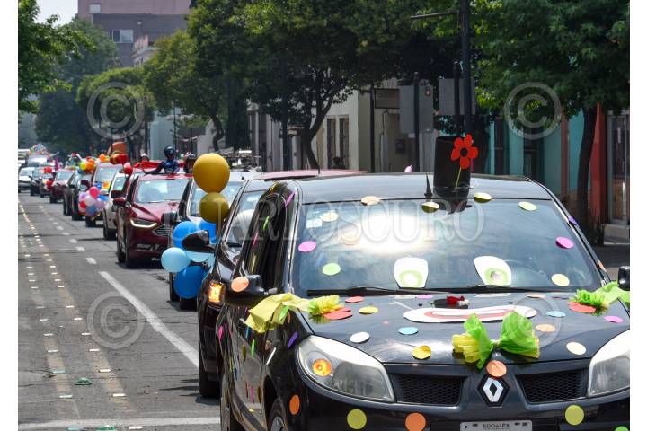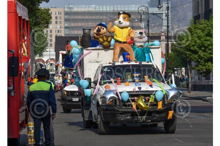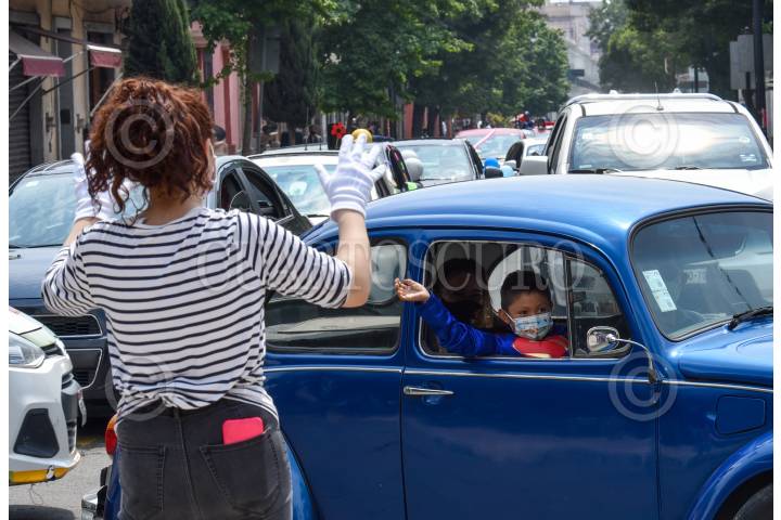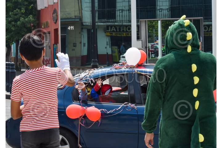 Para evitar algún contagio por COVID-19 algunos festejos del Día del Niño se llevaron a cabo a la distancia cómo está caravana que estuvo dando vueltas en la capital mexiquenses.