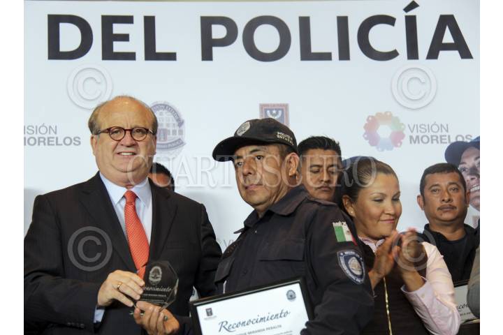 XOCHITEPEC, MORELOS, 15ENERO2015.- El gobernador Graco Ramírez y el comisionado de seguridad, Alberto Capella, asistieron a la celebración del Día del Policía en el Centro de Convenciones World Trade Center, en donde otorgaron reconocimientos a policías por su trayectoria. FOTO: PATRICIA MORALES /CUARTOSCURO.COM
