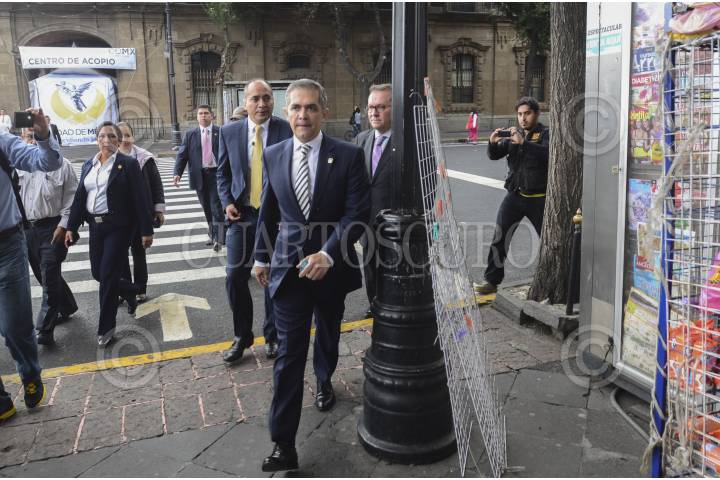 MÉXICO, D.F., 22SEPTIEMBRE2014.- Miguel Ángel Mancera, Jefe de Gobierno Capitalino a su llegada al edificio de gobierno luego de salir de la estación Zócalo. FOTO: ARMANDO MONROY /CUARTOSCURO.COM