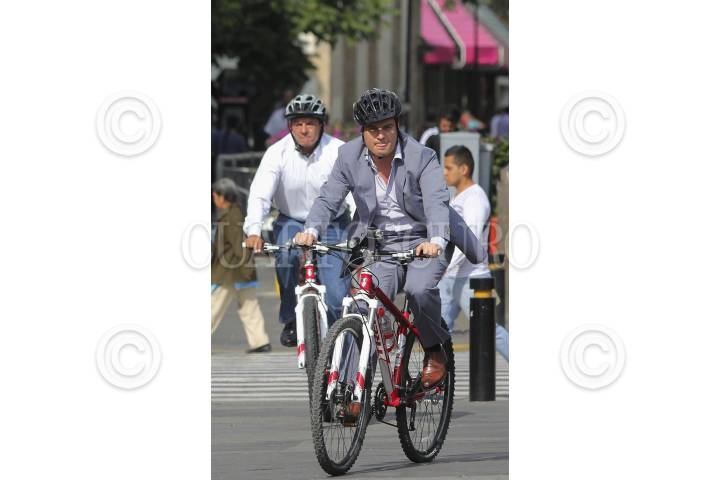 GUADALAJARA, JALISCO, 22SEPTIEMBRE2014.- Jorge Aristóteles Sandoval Díaz, gobernador del estado se sumo a la iniciativa del Día Mundial sin Auto y se traslado de Casa Jalisco a Palacio Gobierno en bicicleta. FOTO: FERNANDO CARRANZA GARCIA/CUARTOSCURO.COM