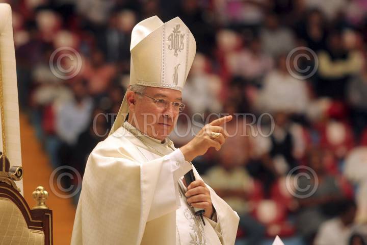 GUADALAJARA, JALISCO, 20MAYO2012.- El Arzobispo de Guadalajara, José Francisco Robles Ortega encabezo la Ordenación Sacerdotal de un grupo de Diáconos, la ceremonia tuvo lugar en el Auditorio Benito Juárez de esta ciudad. FOTO: FERNANDO CARRANZA GARCÍA /CUARTOSCURO.COM