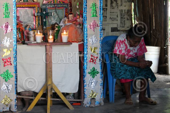 JALPA DE MÉNDEZ, 27JULIO2008.- Una humilde indigena del poblado Ayapa se observa triste sobre un altar catolico. FOTO: MARCO POLO GUZMÁN HERNÁNDEZ/CUARTOSCURO.COM