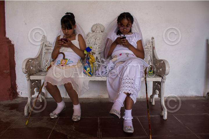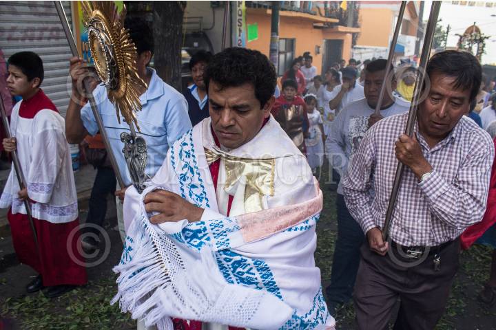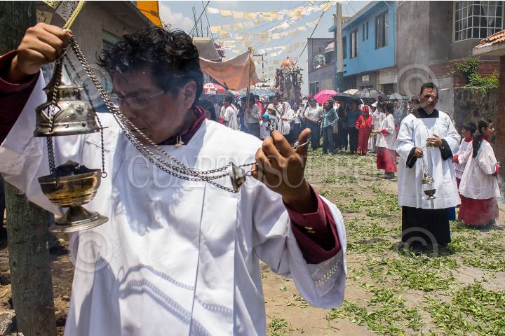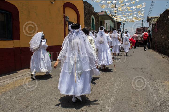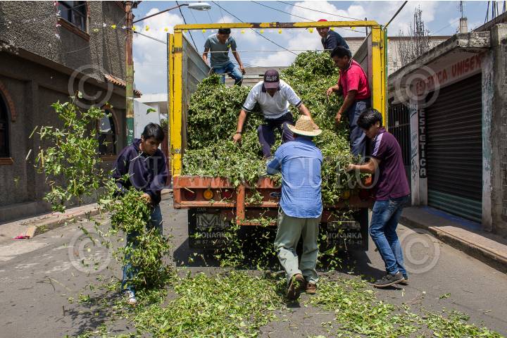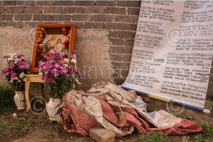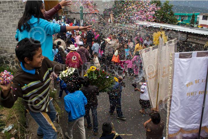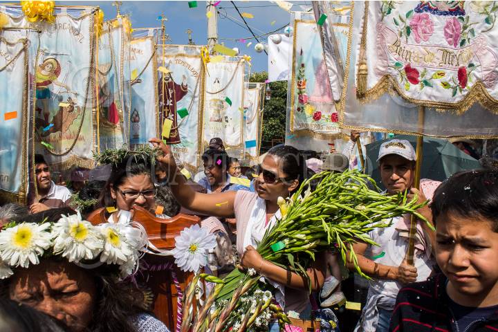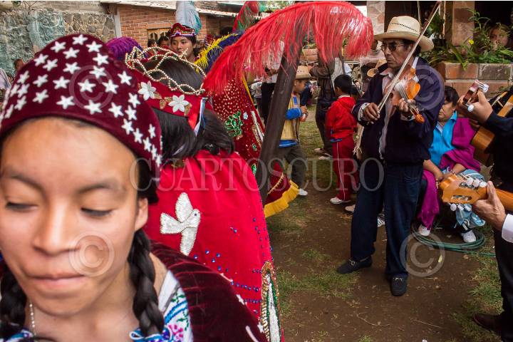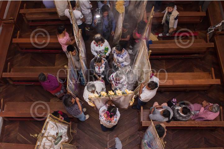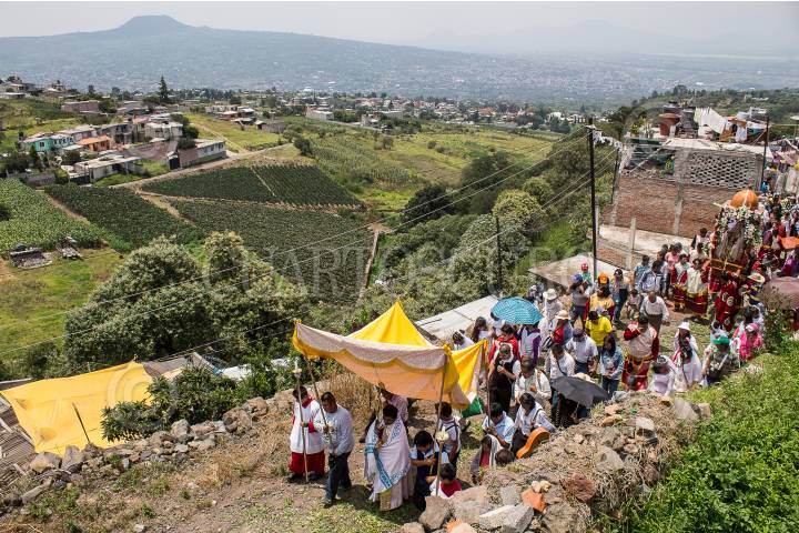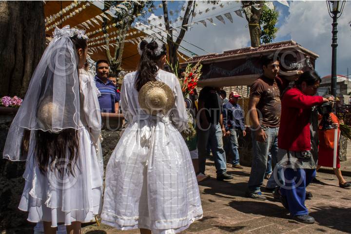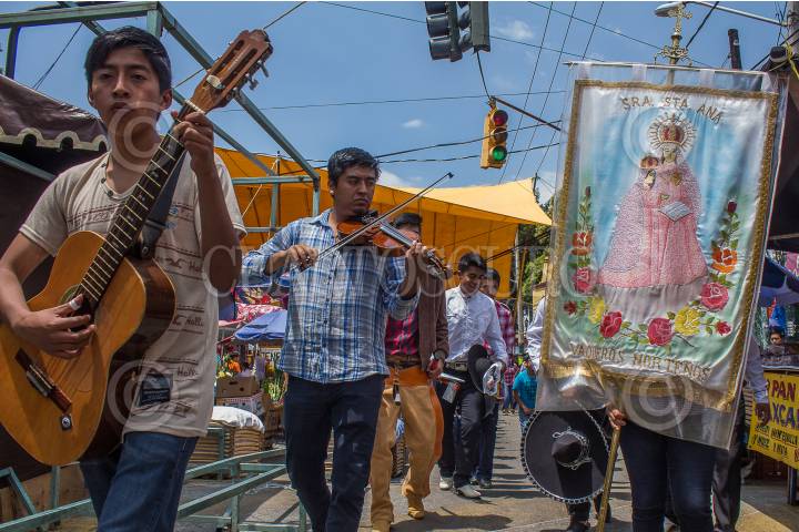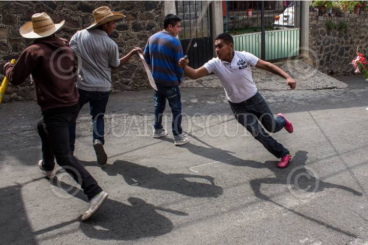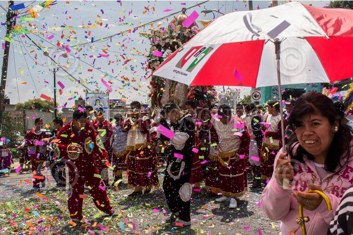 MÉXICO, D.F., 21AGOSTO2015.-Temprano, con los primeros albores del día, comienza a sonar la chirimía, anunciando el inicio de la fiesta. La gente se despereza, las niñas se visten con los atuendos coloridos de aztecas y los niños, jóvenes y adultos por igual se enfundan en sus trajes rojos y negros para la representación de la danza de los santiagueros. Es el festejo de la Señora Santa Ana, patrona del pueblo de Santa Ana Tlacotenco, al sur de la Ciudad de México, en la delegación Milpa Alta. Durante una semana los días serán todos fiesta, comida y baile acompasado por flautas chillonas y violines que interpretan ancestrales canciones aztecas. De acuerdo con los más viejos, los festejos son los mismos con que veneraban a Ehecatl y Tezcatlipoca, deidades prehispánicas, pero ahora están dedicados a la patrona del lugar y mezclados desde hace varios siglos con la tradición católica. La celebración inicia el 25 de julio y se extiende hasta el 4 de agosto, pero se prepara desde el 3 de mayo. En si, nadie recuerda cuando surgió esta costumbre, pero ha pasado de generación en generación, uniendo al pueblo entero para sumergirse en la celebración, que se extiende en menor medida a lo largo de todo el año con misas cada mes y preparativos de los mayordomos que se harán cargo enseñar los bailes y los cantos propios de cada rito. Cada danza dura aproximadamente ocho horas y es ejecutada por diferentes cuadrillas de danzantes durante todo el día de la fiesta. Así, el pueblo se llena de Vaqueros, Aztecas, Tlacualeras, Pastoras y Santiagueros, más los que quieran sumarse, para bailar al ritmo de los tambores y las guitarras. Santa Ana Tlacotenco es una de las últimas localidades de la Ciudad de México donde el náhuatl aún tiene una fuerte presencia como lengua materna entre algunos de sus habitantes. Con la lengua, la identidad indígena se ha preservado creando manifestaciones culturales de gran riqueza que se acrisolan en la fiesta de la Señora Santa Ana, que coincide con las celebraciones en honor al Señor Santiago y antiguos ritos aztecas del valle de México. FOTO: DAVID POLO /CUARTOSCURO.COM