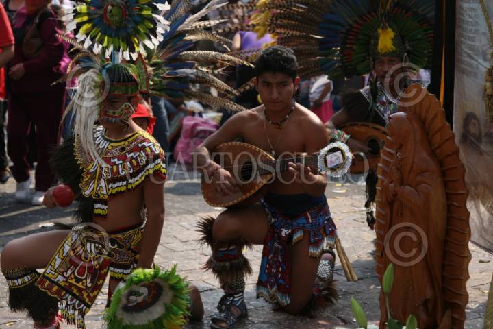 MÉXICO, D.F., 12DICIEMBRE2009.- Danzas ancestrales son representadas sobre la plancha a la entrada de la Basílica de Guadalupe. FOTO: MARCO POLO GUZMÁN HERNÁNDEZ/CUARTOSCURO.COM