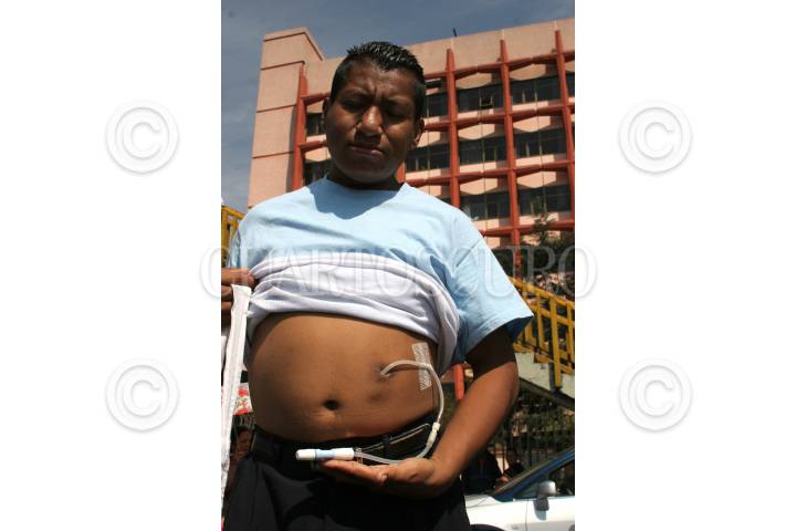 MÉXICO, D.F., 30ENERO2008.- Enfermos de insuficiencia renal cronica cerraron la Avenida Ignacio Zaragoza frente al Hospital del IMSS para exigir que no cambien de laboratorio que surte material para dialisis ( BAXTER ) ya que se quejan que el nuevo laboratorio ( PISA ) surte material de mala calidad. FOTO: HUGO CRUZ/CUARTOSCURO.COM