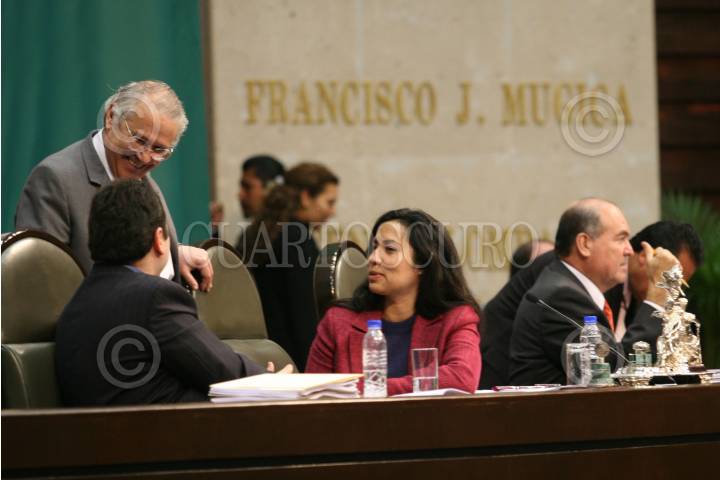 MÉXICO D.F. 11MARZO2008.-Sesión ordinaria en la Cámara de Diputados.En la imagen la diputada Ruth Zavaleta (PRD) dialoga con Christian Castaño (PAN). FOTO: GUILLERMO PEREA/CUARTOSCURO.COM