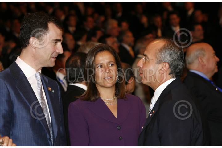 GUATEMALA, GUATEMALA, 14ENERO2008.- El presidente de México, Felipe Calderón, dialoga con el principe Felipe de Asturias durante la toma de posición del presidente electo de Guatemala Álvaro Colom Caballeros, FOTO: ALFREDO GUERRERO/CUARTOSCURO.COM