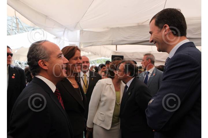 SAN JOSE, COSTA RICA, 08MAYO2010.- El presidente Felipe Calderón dialoga con el príncipe de Asturias Felipe de Borbon durante la ceremonia de transmisión del mando presidencial de la república de Costa Rica que se realizo en el parque metropolitano "La Sabana". FOTO: ARIEL GUTIERREZ/CUARTOSCURO.COM