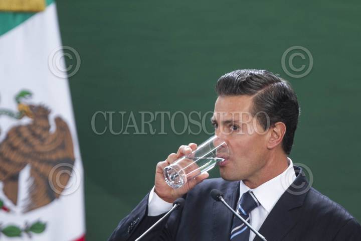 MÉXICO, D.F., 09MARZO2015.- Enrique Peña Nieto, presidente de México toma agua durante el evento en conmemoración al día de la mujer. Aplazan diputados Ley General de Aguas, abrirán espacio al dialogo con la oposición. FOTO: ISABEL MATEOS /CUARTOSCURO.COM