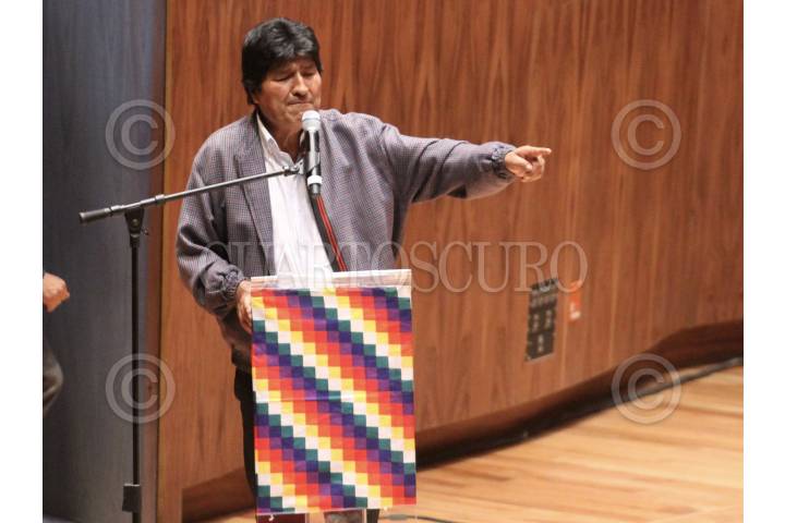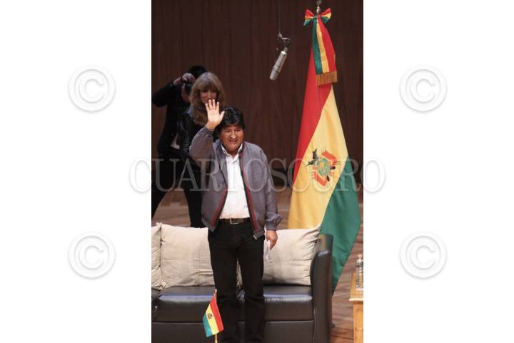 CIUDAD DE MÉXICO, 26NOVIEMBRE.- Evo Morales, expresidente de Bolivia, durante el conversatorio con alumnos de distintas universidades, realizado en la Sala Ollin Yoliztli, al sur de la ciudad. FOTO: ROGELIO MORALES /CUARTOSCURO.COM