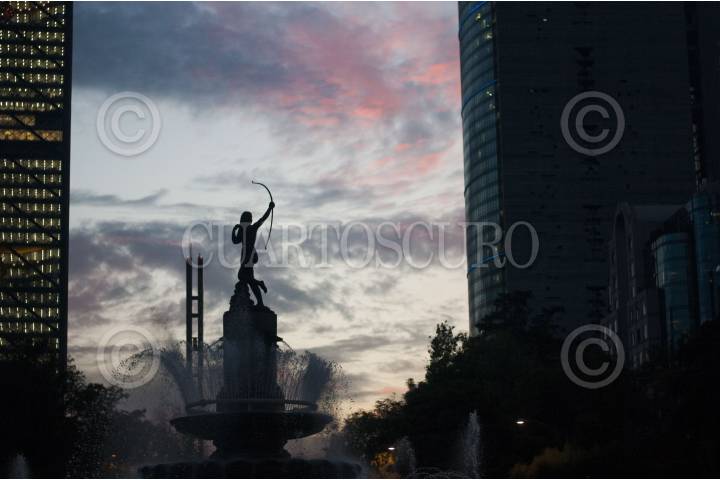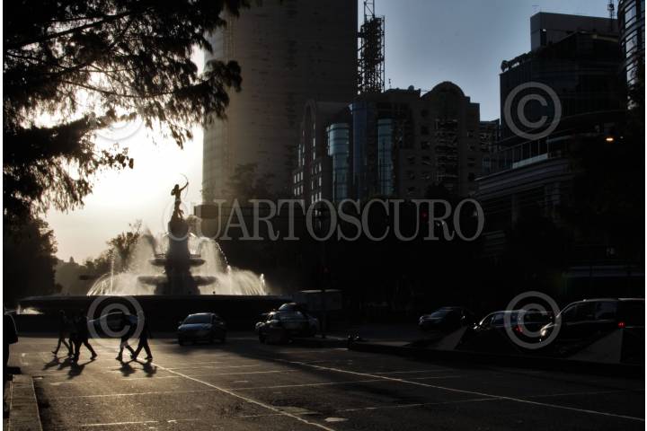 MÉXICO, D.F., 07FEBRERO2015.- El paisaje urbano está compuesto por siluetas, contraluces y sombras. La Glorieta de la Diana resguarda a la hora del atardecer el perfil de esta ciudad moderna. FOTO: MARÍA JOSÉ MARTÍNEZ /CUARTOSCURO.COM