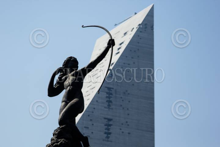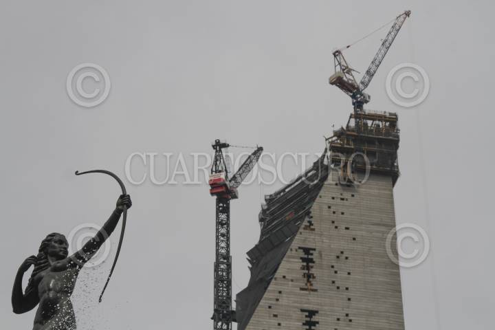MÉXICO, D.F., 27ABRIL2015.- Dos construcciones de corporativos se aprecian desde la glorieta de la Diana Cazadora, monumento simbólico de la Ciudad de México. FOTO: SAÚL LÓPEZ /CUARTOSCURO.COM