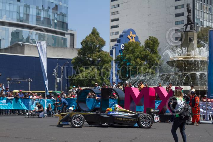 CIUDAD DE MÉXICO, 26MARZO2017.- El corredor mexicano Esteban Gutiérrez realizó pruebas con su monoplaza en Paseo de la Reforma, en el tramo de la Diana Cazadora y la Estela de Luz, el piloto participará en el e Prix de la Formula E que se correrá en el Autódromo Hermanos Rodríguez. FOTO: MOISÉS PABLO /CUARTOSCURO.COM