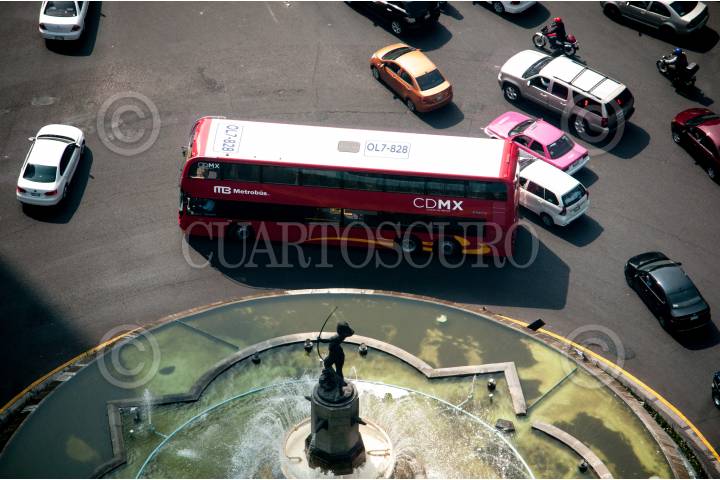 CIUDAD DE MÉXICO, 02MARZO2018.- Un metrobus de dos pisos circula por Paseo de la Reforma, a la altura de la Diana Cazadora. FOTO: DIEGO SIMÓN SÁNCHEZ /CUARTOSCURO.COM