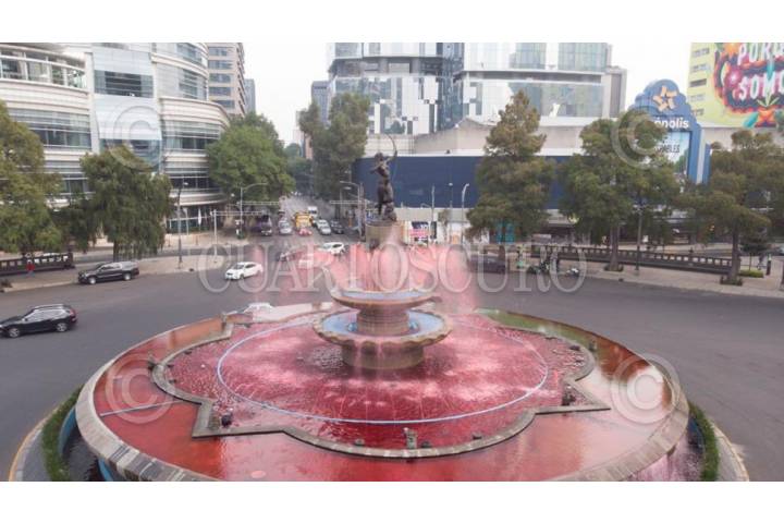 El agua de la fuente de la Diana Cazadora fue teñida de rojo como protesta por los feminicidios ocurridos en el país.