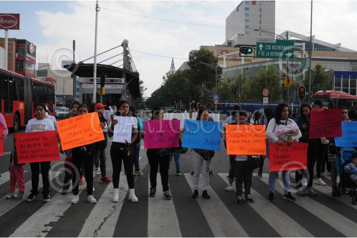 CIUDAD DE MÉXICO, 09JULIO2024. - Las mujeres comerciantes bloquearon y marcharon sobre Insurgentes como protesta por ser retirados de la zona de Buenavista. FOTO: DANIEL AUGUSTO /CUARTOSCURO.COM