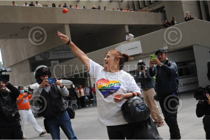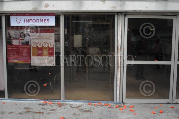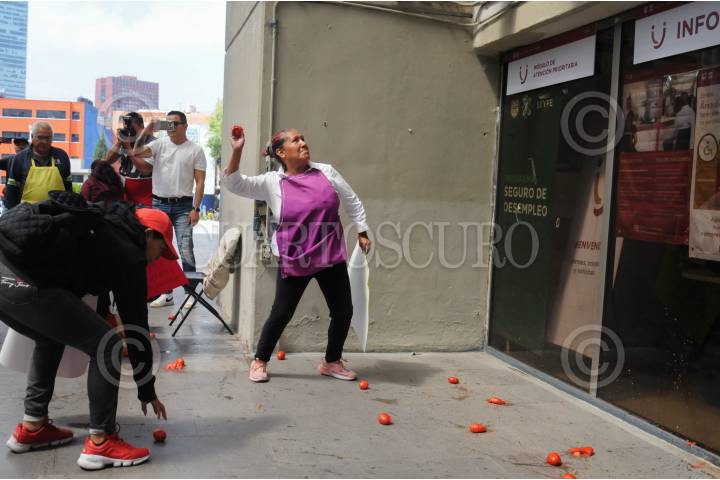 CIUDAD DE MÉXICO, 09JULIO2024. - Comerciantes arrojan jitomates a oficinas de gobierno de la alcaldía Cuauhtémoc. FOTO: DANIEL AUGUSTO /CUARTOSCURO.COM