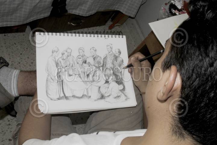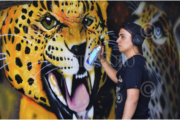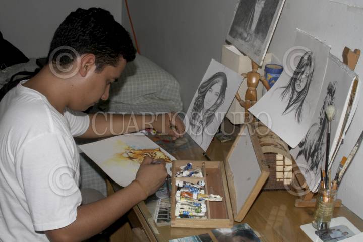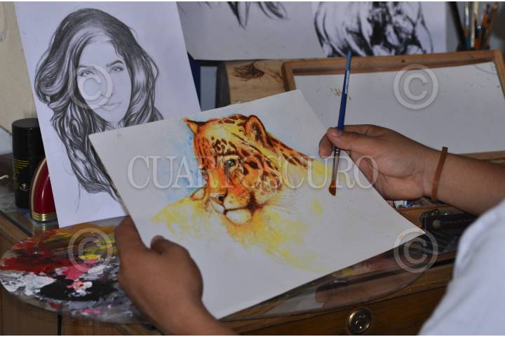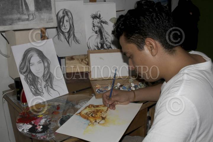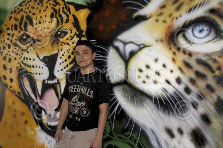 ACAPULCO, GUERRERO, 20FEBRERO2016.- Ricardo Medina ve en la pintura el método de expresión que le permite plasmar y mostrar las emociones que conviven en su interior; el pintor de 28 años de edad, recuerda que a los 15 años realizó sus primeros trazos guiado por su madre quien es artista y creadora. El artista, originario de Tierra Colorada, municipio de Juan R. Escudero, Guerrero, tiene gusto por la obra surrealista de Salvador Dalí, el muralismo de Diego Rivera y el cubismo de Pablo Picasso, pero sus principales influencias son el pintor acapulqueño Rubén del Río y su mamá; reconoce que su obra aún no está definida en una corriente y que continúa en esa búsqueda. Para Medina todo artista debe tener una musa, la suya es el jaguar, animal que aparece en el escudo del estado de Guerrero; con tristeza recuerda una ocasión en que se cazó a un espécimen en la comunidad de Xolapa, desde ahí comenzó a dibujar y pintar estos felinos como un llamado para la protección de la especie que se encuentra en peligro de extinción. Otro de los intereses del pintor es que en Tierra Colorada se promueva el arte y sea accesible para todos y no sólo a ciertos sectores; considera que actualmente los recursos destinados al municipio para actividades artísticas son insuficientes y no se distribuyen equitativamente, además de que hace falta la organización de cursos que puedan brindar a los pintores locales la posibilidad de perfeccionar sus habilidades y llegar a ser reconocidos incluso a nivel mundial. Lamentó que en el estado de Guerrero la pintura no tenga mucha difusión entre los jóvenes a pesar de que hay muchos artistas que desean exponer su obra en alguna galería y dar a conocer su trabajo. FOTO: BERNANDINO HERNÁNDEZ /CUARTOSCURO.COM