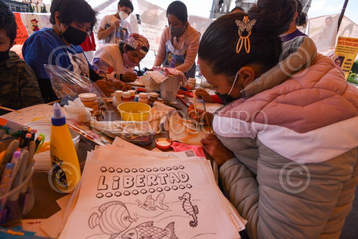 Integrantes de Haz Valer mi Libertad realizaron Tallereando por la Libertad en la Plaza de los Mártires, en busca de que sus familiares presos puedan tener acceso a la Ley de Amnistía.