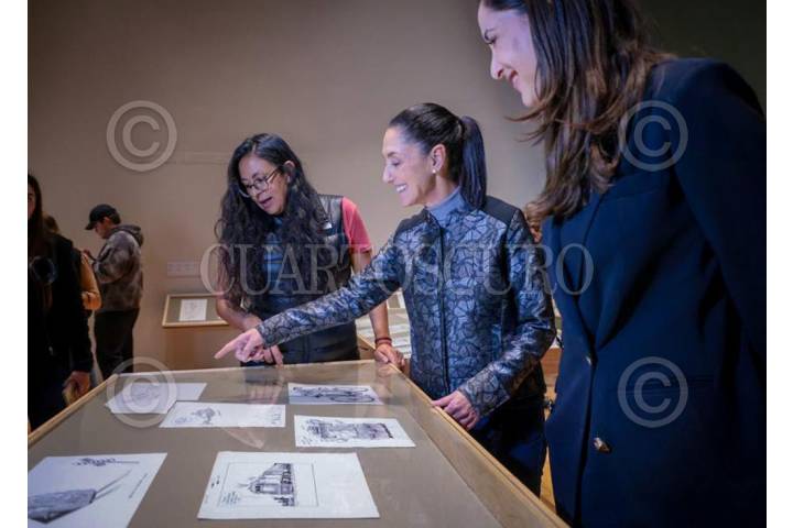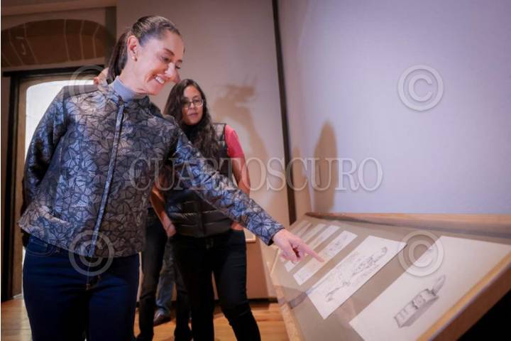 La Jefa de gobierno de la Ciudad de México, CLaudia Sheinbaum, durante un recorrido por el Museo de la Ciudad de México, en donde visitó la exposición "Gabinete de Maravillas de Antonio Helguera", la cual muestra el trabajo del monero y dibujante del periódico La Jornada, quien falleció el 25 de Junio del año anterior.