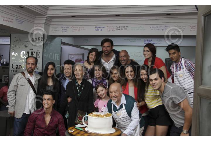 CIUDAD DE MÉXICO, 18MAYO2016.- El actor Sergio Corona festejo junto con en el elenco del programa "Como Dice el Dicho" los 400 programas al aire, celebraon con un pastel en el restaurante del mismo nombre de la producción en la colonia Anzures. FOTO: ANTONIO CRUZ /CUARTOSCURO.COM