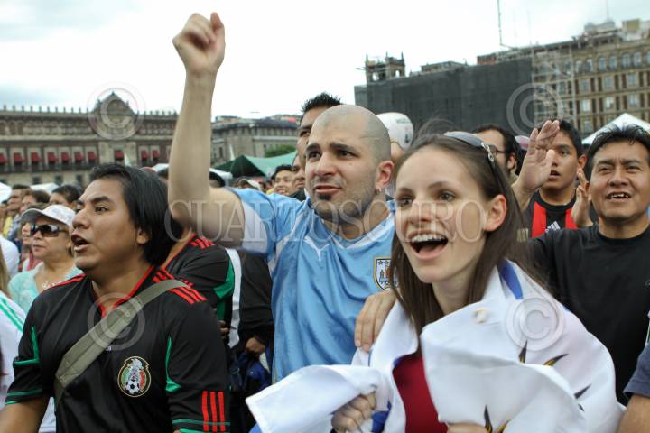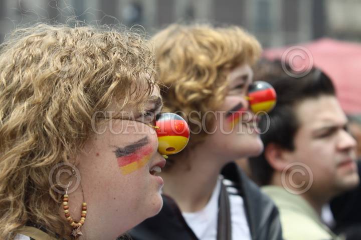 MÉXICO, D.F., 10JULIO2010.- Cientos de aficionados de Uruguay y de Alemania se dieron cita esta tarde en el FIFA Fan Fest para ver el partido de dichas selecciones por el 3er lugar del mundial de Sudafrica 2010. FOTO: RODOLFO ANGULO/CUARTOSCURO.COM