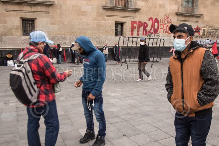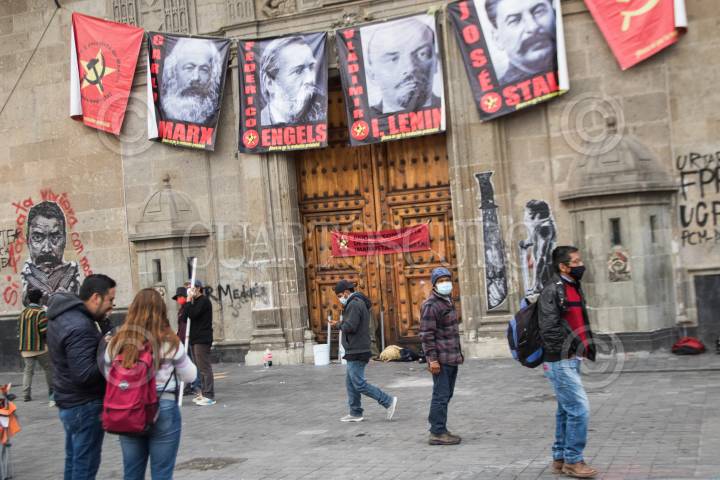 Integrantes del Frente Proletario Revolucionario (FPR), realizan una manifestación en las afueras de Palacio Nacional