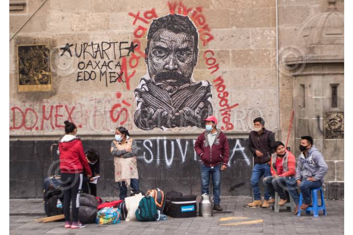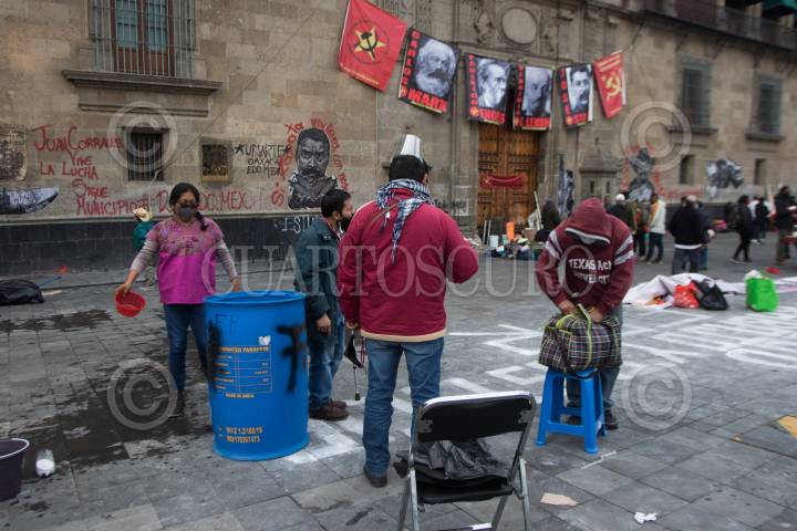 Continúan en plantón el "Campamento México", a quienes el viernes por la noche les fueron retiradas 150 casas de campaña.