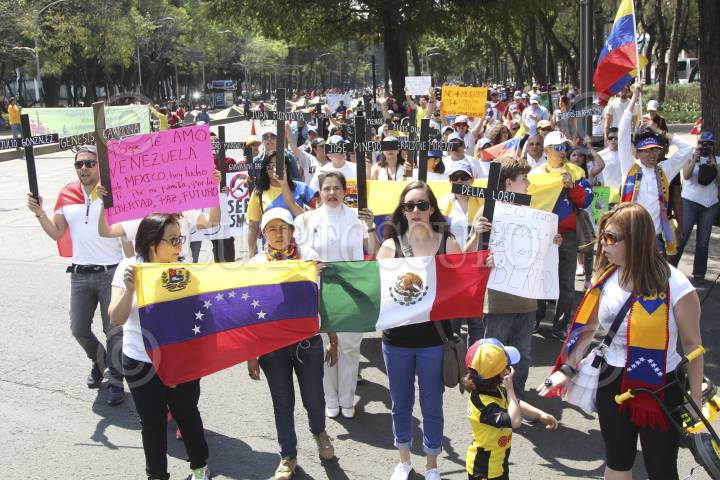 MÉXICO, D.F., 02MARZO2014.- Alrededor de 100 integrantes de la comunidad venezolana en México marcharon sobre Paseo de la Reforma por tercer domingo consecutivo para exigir que cese el conflicto social que existe en Venezuela. FOTO: SAÚL LÓPEZ /CUARTOSCURO.COM