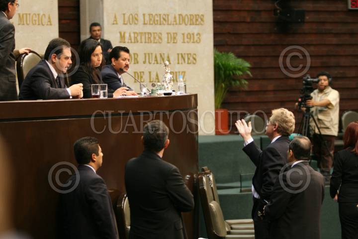 MÉXICO D.F. 18OCTUBRE2007.-El diputado del PRD, Javier Gónzalez Garza y Hector Larios del PAN y Ruth Zavaleta presidenta de la mesa directiva durante la sesión en Cámara de Diputados, donde se dictamina el presupuesto para el 2008. FOTO: GUILLERMO PEREA/CUARTOSCURO.COM