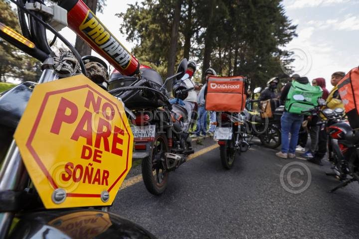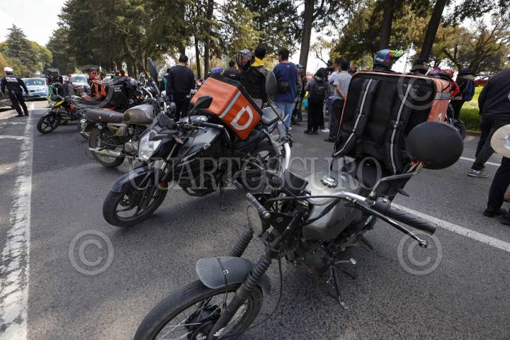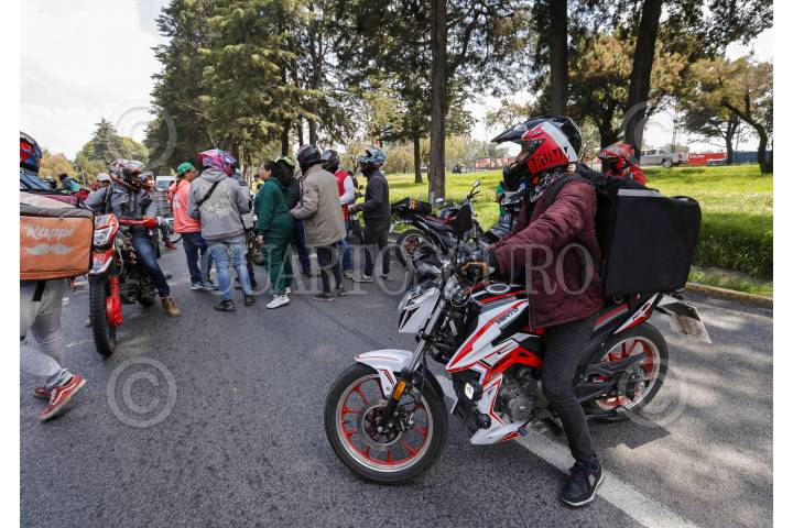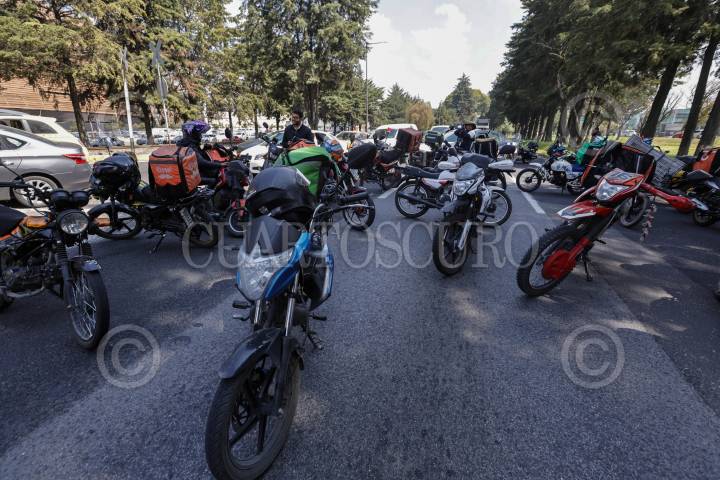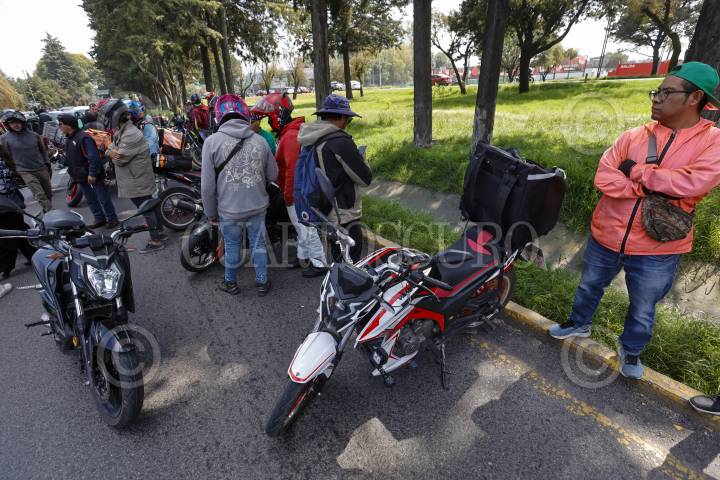 TOLUCA, ESTADO DE MÉXICO, 30OCTUBRE2024.- Repartidores de DiDi y Uber bloquearon Paseo Tollocan con sus motocicletas en rechazo al proyecto de ley laboral impulsado por el Gobierno Federal, en donde se establece que tendrían una jornada laboral de 48 horas semanales, lo que consideran les afectaría. FOTO: CRISANTA ESPINOSA AGUILAR /CUARTOSCURO.COM