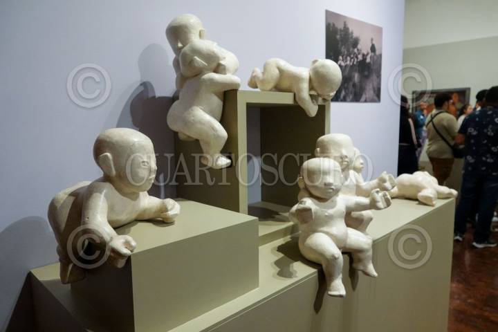 CIUDAD DE MÉXICO, 22MAYO2025.- Replica de la obra “Niños sobre la Barda” que integra la exposición "Jorge González Camarena. Más allá de la monumentalidad" que forma parte de un recorrido dual por el Museo Mural Diego Rivera y el Palacio de Bellas Artes con motivo del 45 aniversario de la muerte del artista.