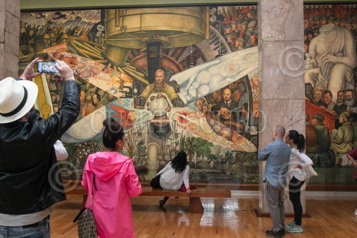 CIUDAD DE MÉXICO, 25JUNIO2024.- En el Palacio de Bellas Artes se presentó la exposición "Nueva Vida a un Mural Destruido 1933/1934. La muestra recorre la historia del mural que el artista Diego Rivera realizó en 1933 en el Centro Rockefeller en Nueva York, el cual fue censurado y destruido por los mismos contratistas. El mismo Rivera se encargo de hacer un segunda versión en el Palacio de Bellas en el año de 1934, y el cual esta titulado "El hombre controlador del universo". La muestra presenta, a través de testimonios materiales como bocetos, fotografías, fragmentos fílmicos y sonoros, hemerografía y pintura, dos momentos cruciales en la creación de esta obra monumental. FOTO: MOISÉS PABLO/CUARTOSCURO.COM