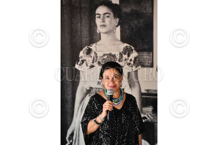 CIUDAD DE MÉXICO, 06JULIO2024.- Cristina Kahlo, sobrina nieta de Frida Kahlo, fotógrafa mexicana, curadora y galerista, durante la inauguración de la exposición "Kahlo sin fronteras" en Museo Casa Estudio Diego Rivera y Frida Kahlo, en el 70 aniversario luctuoso de la pintora. La muestra exhibe parte del expediente clínico y fotografías de Frida Kahlo durante su estancia en el Hospital ABC; además documentos del círculo cercano de Kahlo. FOTO: MARIO JASSO/CUARTOSCURO.COM