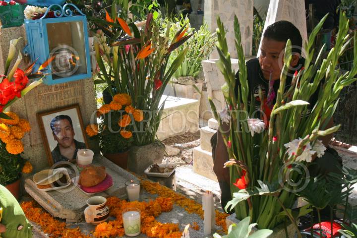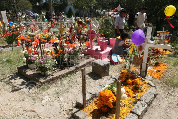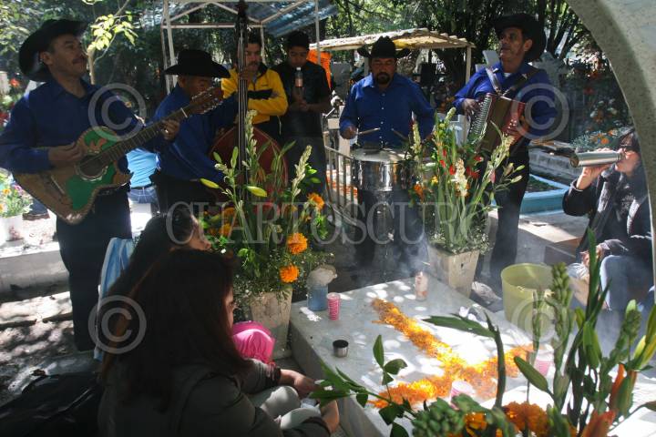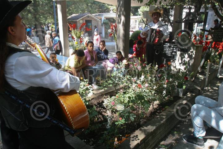 MÉXICO, D.F., 02NOVIEMBRE2010.- En el Panteón de Jilotepec, en la delegación Xochimilco, cientos de personas acuden este Día de Muertos para acompañar a sus difuntos con un poco de música, comida y bebida. FOTO: ISAAC ESQUIVEL/CUARTOSCURO.COM