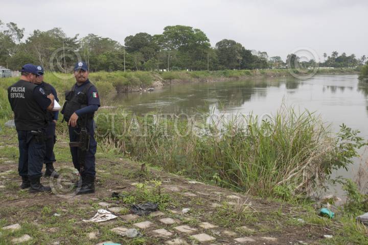NACAJUCA, TABASCO, 31ENERO2014.- El cuerpo de un hombre en estado de putrefacción fue encontrado por lugareños en los márgenes del río Carrizal a la altura de la ranchería Bosques de Saloya. Elementos de la Policía municipal resguardan el lugar de los hechos en espera que llegue el ministerio público, peritos y médico legista; se especula que los restos humanos del occiso, este sin cabeza. FOTO: MARCO POLO GUZMÁN HERNÁNDEZ /CUARTOSCURO.COM
