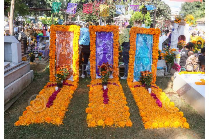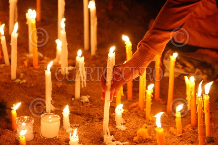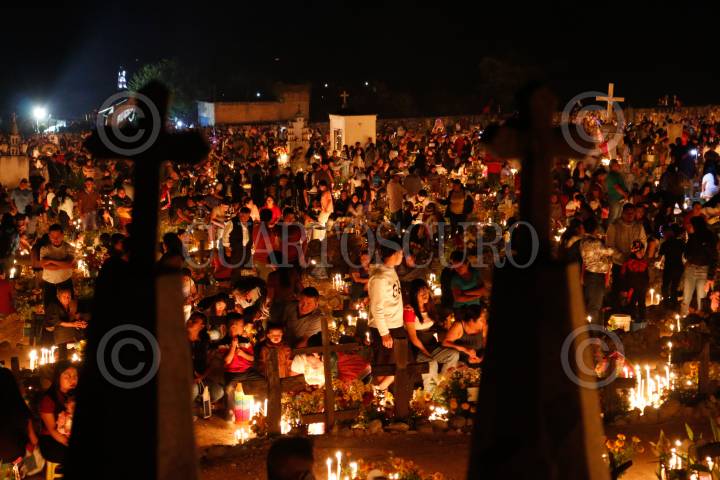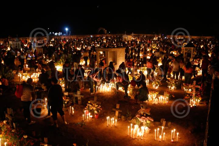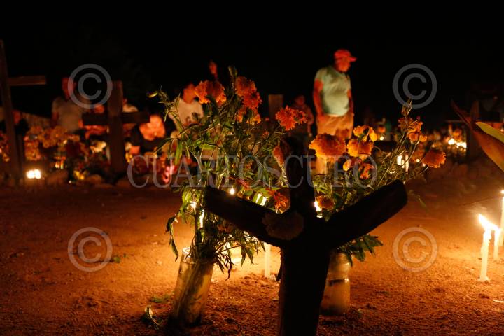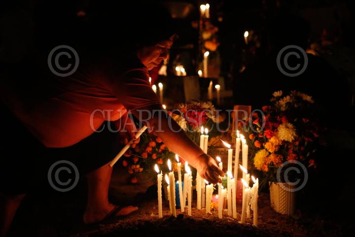 HUITZILTEPEC, GUERRERO, 02NOVIEMBRE2024.- La localidad de Huitziltepec continúan preservando su ancestral ritual de Día de Muertos, el cual inicia desde el 23 de octubre y termina el 30 de noviembre con ofrenda para las "almas en pena”. Cada año, habitantes de esta localidad originaria del estado de Guerrero y en donde el ochenta por ciento de su población habla lengua Nahua, cada 31 de octubre, 1 y 2 de noviembre acuden al panteón a iluminar el camino para el regreso de sus difuntos. Según dicta su tradición, alumbrar el camino y cada una de las tumbas significa enseñar a los difuntos la forma de regresar tras visitar los hogares de sus familiares que siguen con vida y que los recuerda y reciben con ofrendas y flores. FOTO: DASSAEV TÉLLEZ ADAME/CUARTOSCURO.COM