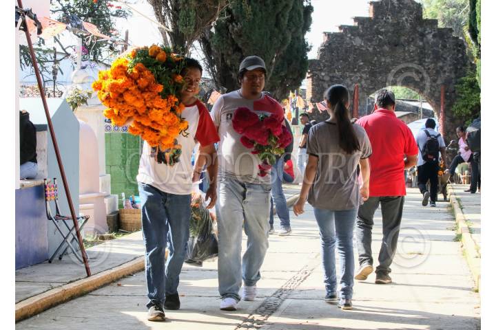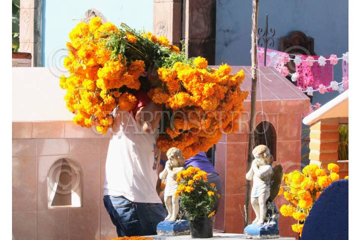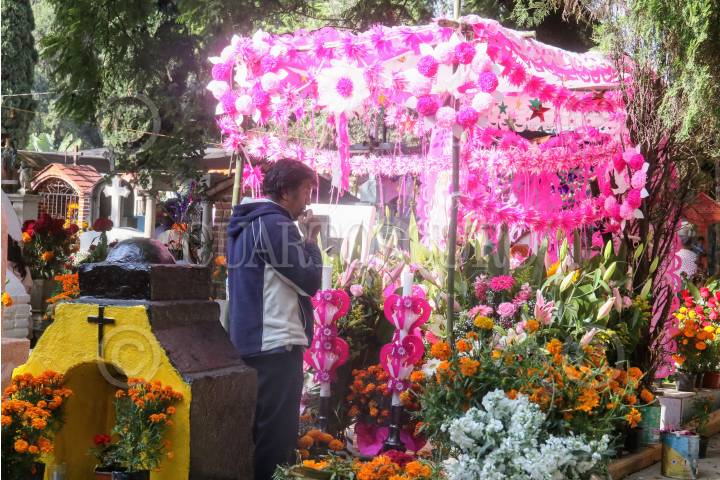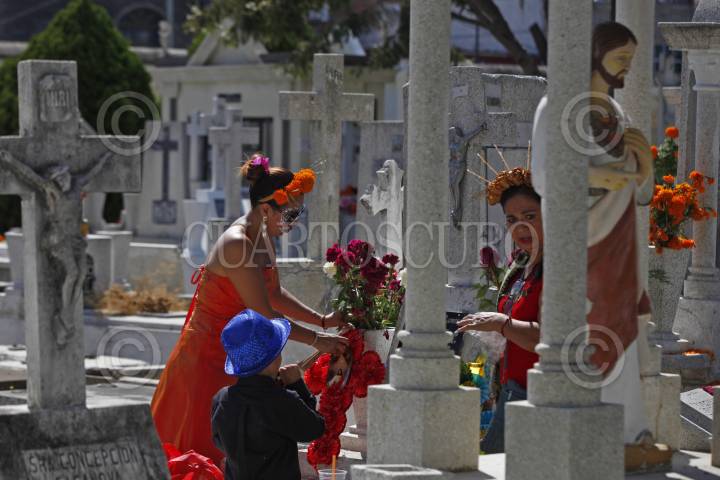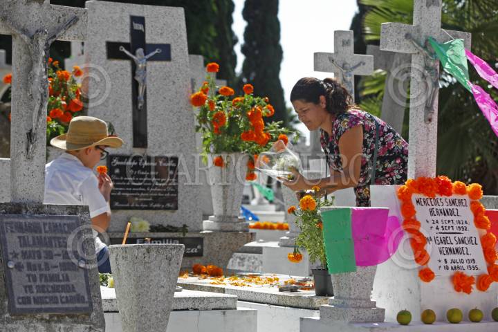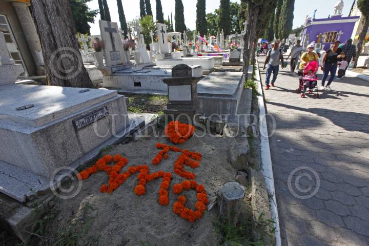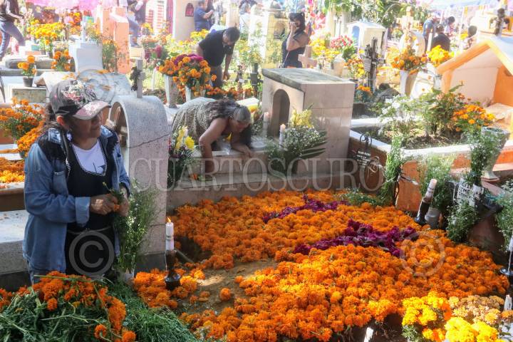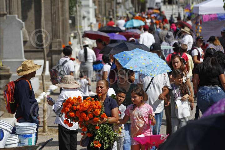 GUADALAJARA, JALISCO. 02NOVIEMBRE2023.- Cientos de personas acudieron a los diversos Panteones del Área Metropolitana, para visitar y llevar ofrendas a sus difuntos este Día de Muertos. FOTO: FERNANDO CARANZA GARCIA / CUARTOSCURO.COM