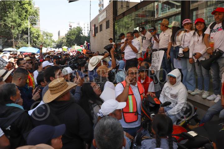 CIUDAD DE MÉXICO, 10FEBRERO2025.- Los comerciantes llegaron frente a las instalaciones de la Sedeco y llevaron a cabo un mitin. FOTO: DANIEL AUGUSTO/ CUARTOSCURO.COM