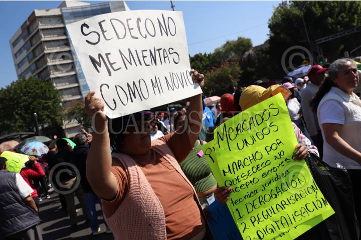 CIUDAD DE MÉXICO, 10FEBRERO2025.- Comerciantes de los distintos mercados de la capital se manifestaron en contra de los nuevos lineamientos propuestos por la Sedeco. FOTO: DANIEL AUGUSTO/ CUARTOSCURO.COM