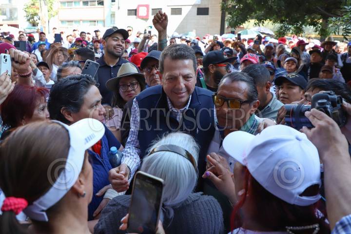 CIUDAD DE MÉXICO, 04MARZO2025.- Cientos de locatarios de los mercados de la capital marcharon está mañana rumbo al Zócalo para manifestarse en contra de los lineamientos y el proceso de digitalización que propone la Sedeco. FOTO: DANIEL AUGUSTO/ CUARTOSCURO.COM