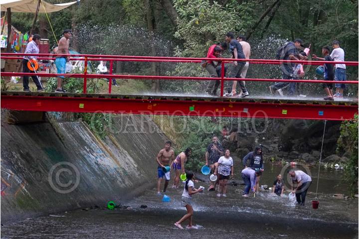 CIUDAD DE MÉXICO 19ABRIL2025.- Decenas de personas celebraron el Sábado de Gloria en el Parque Ecológico de los Dinamos. Aprovechando el agua del último río vivo en la ciudad chicos y grandes disfrutaron de mencionada celebración. FOTO: ROGELIO MORALES CUARTOSCURO.COM