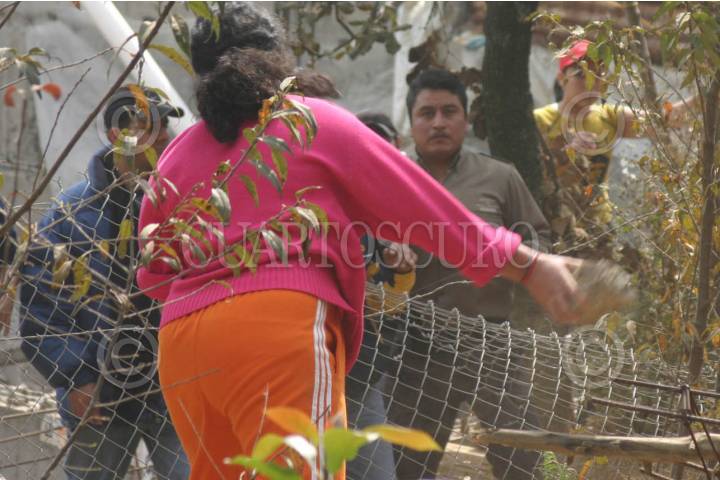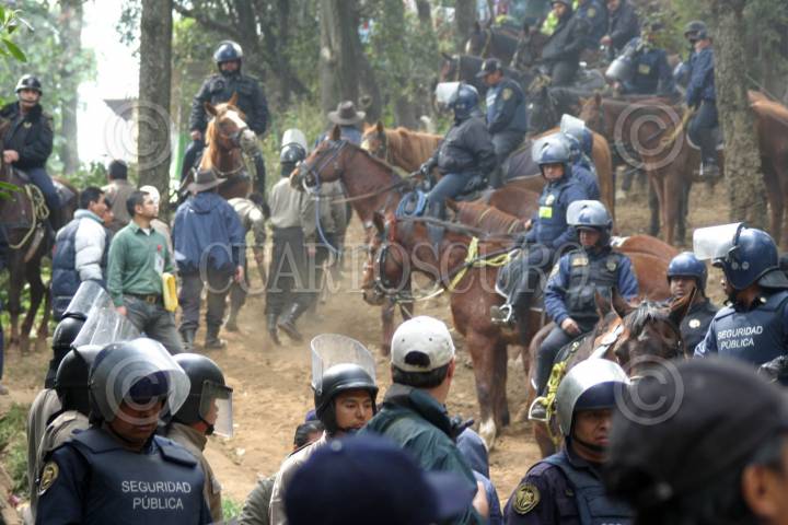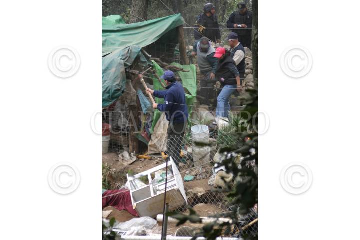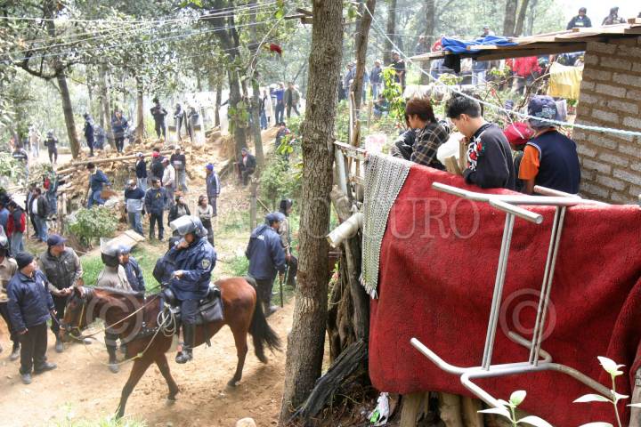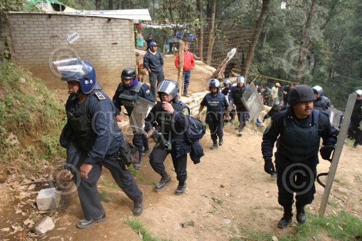 MÉXICO DF 20DICIEMBRE2005.- La policia de la SSP llevó a cabo un desalojo de habitantes irregulares en la zona de la cañada, en el segundo Dinamo . En los enfrentamientos resultaron lesionadas tres personas FOTO: Pedro Marrufo/CUARTOSCURO.COM