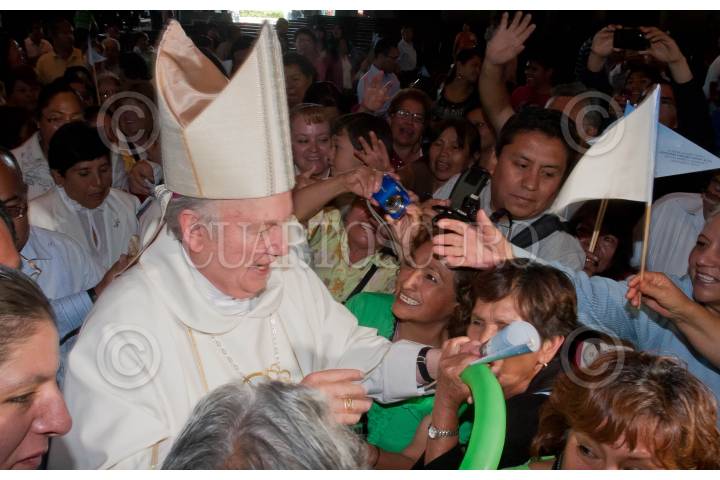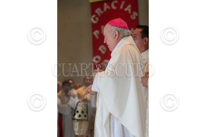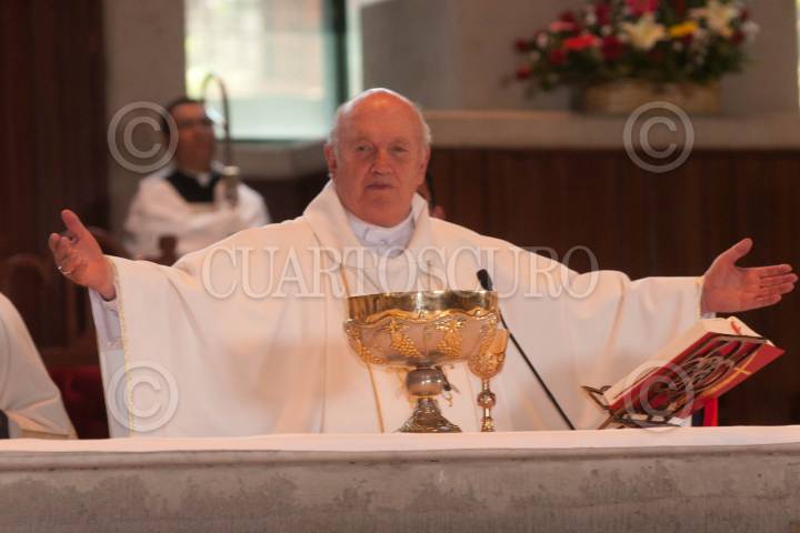 SAN CRISTOBAL ECATEPEC, ESTADO DE MÉXICO 18MAYO2012.- Onésimo Cepeda Silva primer Obispo de la diócesis de Ecatepec cumplió 75 años, edad obligatoria para jubilarse, por lo que su renuncia fué presentada por él y aceptada por Benedicto XVI. Hoy ofició su última misa como Obispo en funciones de la diócesis creada en 1995, con sede en la Catedral de Ecatepec, donde fue ovacionado por sus feligreses, algunos funcionarios locales y sacerdotes. Onésimo Cepeda es conocido por sus controvertidas declaraciones a favor de sus amistades políticas y con poder económico. Cepeda Silva anunció que viajará a Italia por lo menos ahora para descansar. FOTO: JUAN PABLO ZAMORA /CUARTOSCURO.COM