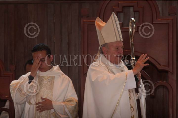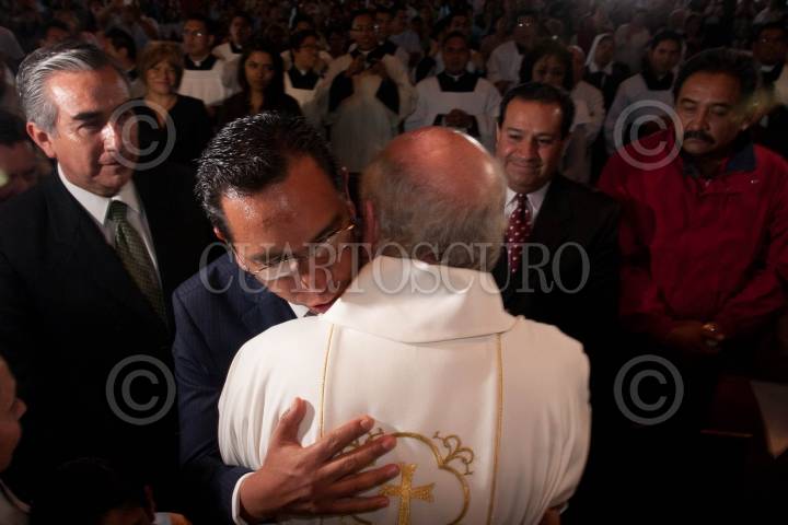 SAN CRISTOBAL ECATEPEC, ESTADO DE MÉXICO 18MAYO2012.- Onesimo Cepeda ofició su última misa como Obispo en funciones en la Catedral de Ecatepec, donde fue ovacionado por sus feligreses, algunos funcionarios locales y sacerdotes. En los próximos días viajará a Italia para vacionar y relajarse dijo. FOTO: JUAN PABLO ZAMORA /CUARTOSCURO.COM