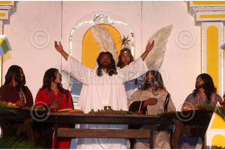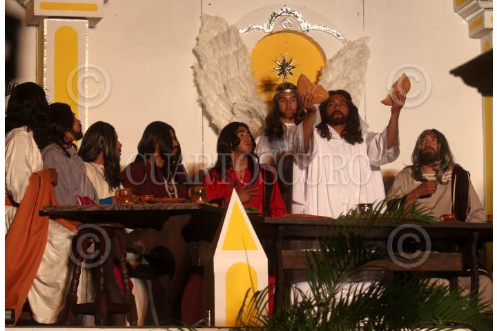 MÉXICO, D.F., 05ABRIL2012.- Como parte de la 169 representación de la Pasión y muerte de Cristo, se realizó la última cena y el lavado de pies en la explanada del jardín Cuitlahuac. FOTO: ENRIQUE ORDÓÑEZ /CUARTOSCURO.COM