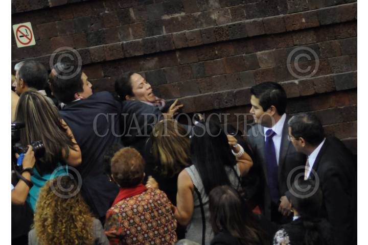 MEXICO, D.F., 11DICIEMBRE2013.- La diputada Karen Quiroga del PRD pelea con la diputada del PRI durante la discusión en lo general la reforma energética. FOTO: IVAN STEPHENS /CUARTOSCURO.COM