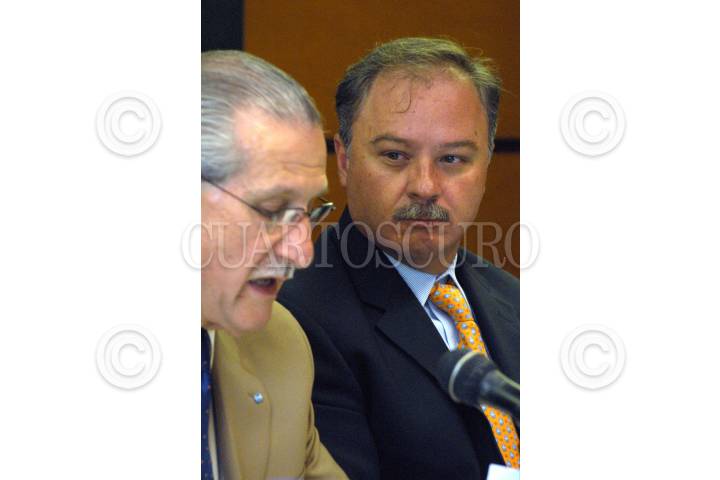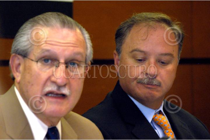 MÉXICO D.F. 23 MARZO 2006.- El diputado, Jesús González Schmal y Mario Beaurengard, Secretario Ejecutivo del IPAB durante su comparecencia ante la comisión de Investigación de Bienes e Inmuebles de la camara de dipitados. FOTO: Guillermo Perea / CUARTOS CURO.COM