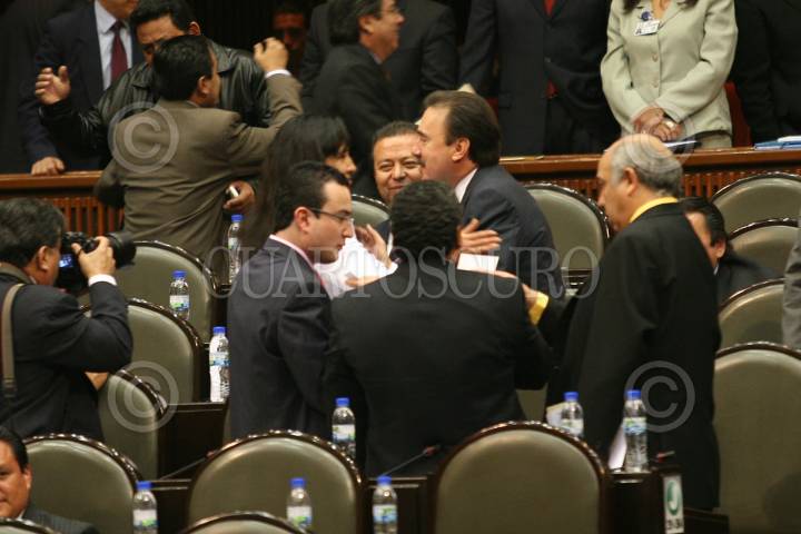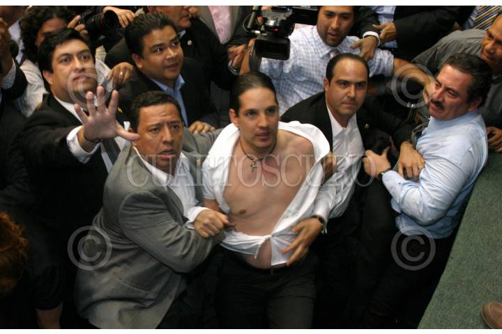 MÉXICO, D.F., 28NOVIEMBRE2006.- El diputado panista salió volando luego de enfrentarse a patadas con un diputado perredista, después de horas en el que ambos bandos tomaron la tribuna. FOTO: MOISÉS PABLO/CUARTOSCURO.COM