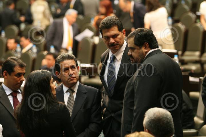 MÉEXICO D.F. 19FEBREO2008.-Los diputados, Emilio Gamboa Patrón (PRI), Javier Goonzález Garza (PRD) y Hectro Larios (PAN) dialogan durante la sesión ordinaria en la Cámara de Dipitados. FOTO: GUILLERMO PEREA/CUARTOSCURO.COM